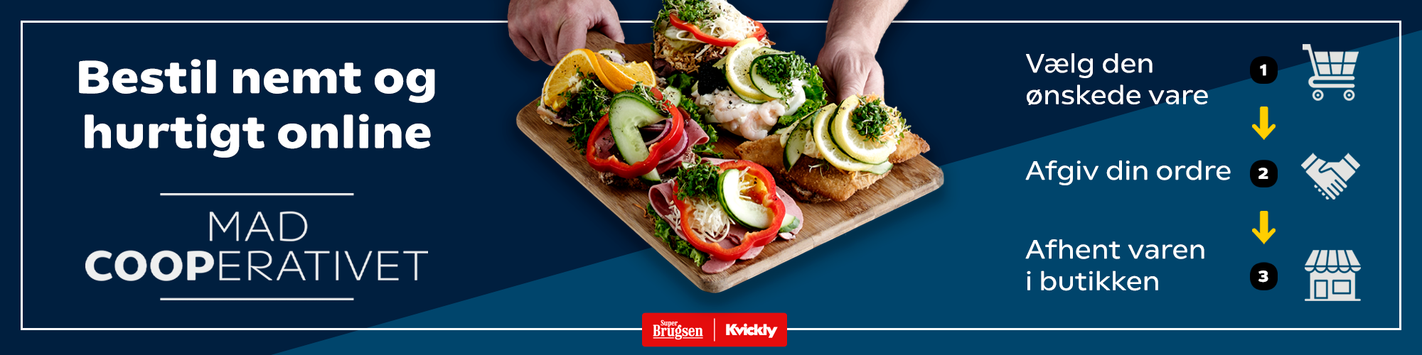 Skal afhentes ved lagerindgangen bagerst i butikken senest onsdag