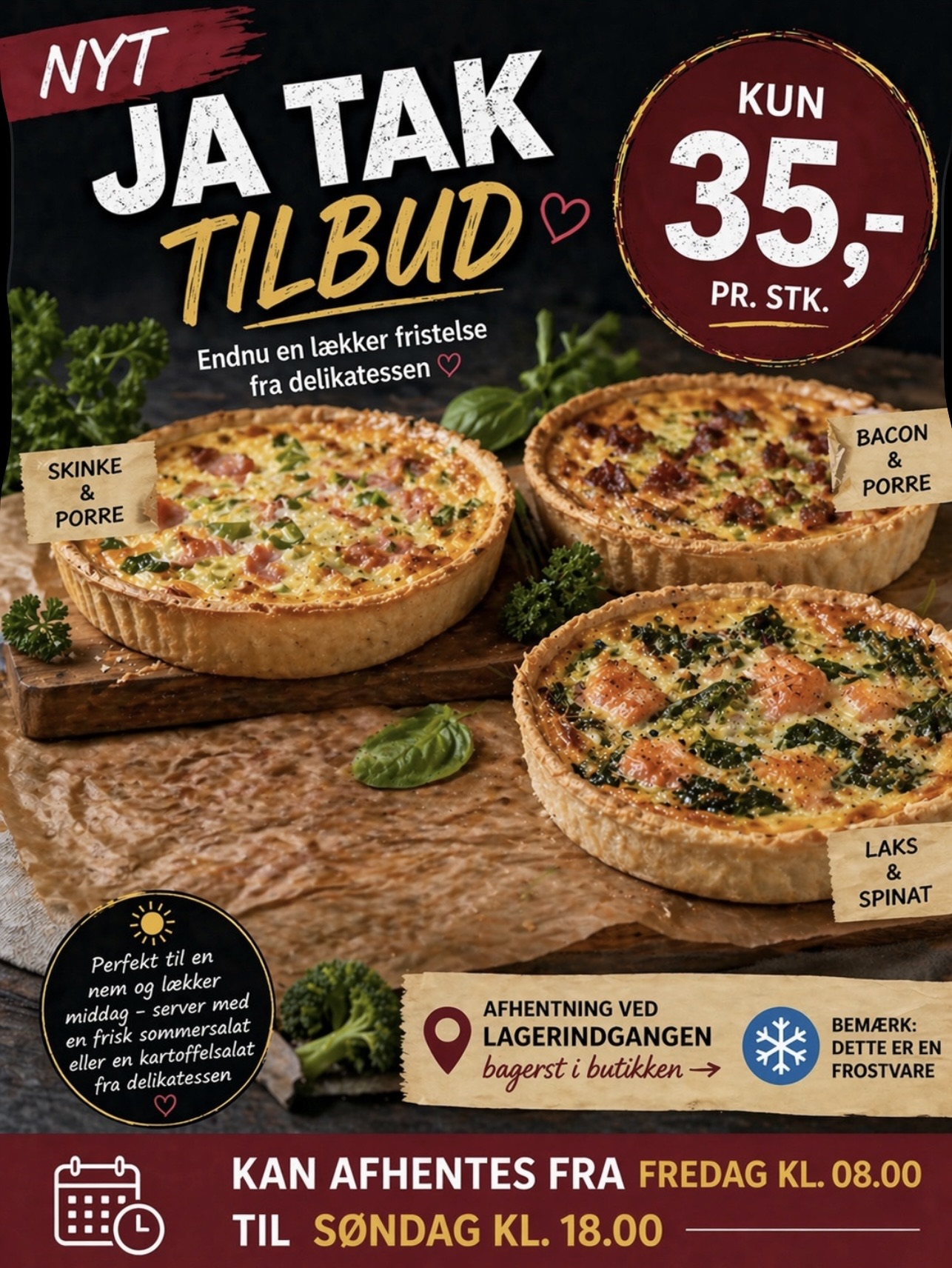 Perfekte til en nem og lækker middag – server dem med en frisk sommersalat eller en kartoffelsalat fra delikatessen ☀️